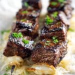 These Reuben Steak Skewers with Sauerkraut present a delicious spin on the classic Reuben sandwich flavors, featuring tender minute steaks seasoned with a house spice rub, grilled quickly on skewers, and served alongside tangy sauerkraut, gherkins, and a creamy Russian dressing. A perfect appetizer or main for those who enjoy the bold flavors of a Reuben in a fun, easy-to-eat format.