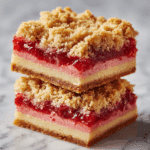 A simple and delicious Rhubarb Dump Cake featuring tart rhubarb layered with sugar, strawberry gelatin, and topped with yellow cake mix and melted butter. Baked until golden and bubbly, this dessert is perfect served warm with whipped cream or vanilla ice cream.