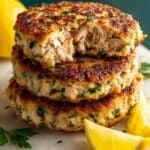 Heat the olive oil in a large skillet over medium heat until shimmering. Carefully place the patties in the pan, leaving some space between each. Cook for about 3 to 4 minutes per side until they’ve developed a gorgeous golden-brown crust and are warmed through. Once cooked, transfer the salmon cakes to a paper towel-lined plate to drain any excess oil. This step guarantees that perfect balance of crunch on the outside and succulence inside.