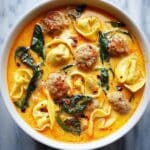 A hearty and comforting Sausage Tortellini Soup with fresh spinach and a creamy broth, perfect for an easy weeknight dinner. This Italian-American dish combines savory Italian sausage, tender cheese tortellini, and flavorful seasonings simmered together for a warm, satisfying meal.