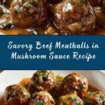 These Savory Beef Meatballs in Mushroom Sauce are a comforting and flavorful dish featuring tender ground beef meatballs simmered in a rich, creamy mushroom sauce. Perfect for a hearty dinner, this recipe combines well-seasoned meatballs with sautéed mushrooms and onions in a luscious sauce made with beef broth and heavy cream. Serve with mashed potatoes, rice, or pasta for a satisfying meal.