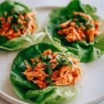 Keep any leftover chicken mixture in an airtight container in the refrigerator for up to three days. It’s best to store the lettuce separately to keep it crisp and fresh until you’re ready to serve again.