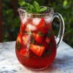 - Add Garnish Strawberries: Add the sliced strawberries to the pitcher for added texture and visual appeal, enhancing the drink’s fresh fruity flavor.