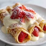 Strawberry French Toast Rolls are a delightful twist on traditional French toast, featuring slices of bread rolled around fresh strawberries, coated in a cinnamon-vanilla egg mixture, and pan-fried until golden brown. Finished with a dusting of powdered sugar, these rolls offer a sweet and satisfying breakfast or brunch option that’s easy to prepare in just 20 minutes.