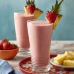 This Strawberry Piña Colada Smoothie Recipe yields about two generous servings, perfect for sharing or enjoying one now and saving one for later.