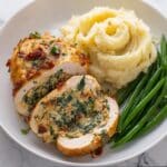 If you want to prepare in advance, freeze cooked or uncooked stuffed chicken breasts wrapped tightly in plastic wrap and aluminum foil. Label and store in the freezer for up to 2 months. Thaw in the fridge overnight before reheating or baking.