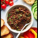 A vibrant and flavorful Sun Dried Tomato and Olive Tapenade combining the rich taste of Kalamata olives, sun dried tomatoes, fresh parsley, and bright lemon juice. This easy-to-make chunky paste is perfect as a spread, appetizer, or accompaniment to bread and vegetables.
