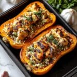 Sweet and Savory Honey Roasted Butternut Squash Stuffed with Chicken Recipe