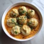 - Serve: Ladle the soup and dumplings into bowls and garnish with fresh cilantro leaves. Serve hot and enjoy the comforting blend of spicy, creamy, and fresh flavors.