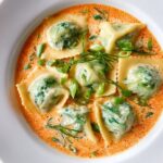 This Thai Red Curry Dumpling Soup is a flavorful and comforting dish combining aromatic red curry, tender dumplings, and fresh greens in a creamy coconut broth. Perfect for a quick and easy meal, it delivers a delightful balance of spicy, savory, and tangy flavors with vibrant herbs and optional chili oil for added heat.