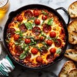 I cannot recommend enough giving this Tomato Burrata Pepperoni Pizza Dip Recipe a try soon. It’s one of those recipes that feels effortlessly special, perfect for sharing, and guaranteed to bring smiles around the table. Whether you serve it at a casual get-together or cozy night in, it delivers all the gooey, melty, pepperoni-packed pizza joy you crave in an innovative dip form. Give it a go and prepare to make it your new go-to appetizer — your friends and family will thank you!