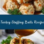 Simple garnishes make these Turkey Stuffing Balls pop on the plate. A sprinkle of fresh chopped parsley or thyme adds a fresh herbal brightness and lovely green color contrast. For a little extra zing, a light drizzle of gravy or a dollop of cranberry sauce brightens the rich flavors beautifully.