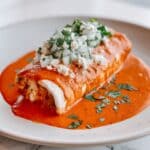 Finishing with fresh cilantro sprigs really brightens up these wet burritos and adds a lovely herbal note that cuts through the richness. A dollop of sour cream on the side not only adds creaminess but also tempers any extra heat for a perfectly balanced bite. Guacamole and spicy salsa make wonderful companions as well, bringing fresh, zesty elements to the plate.